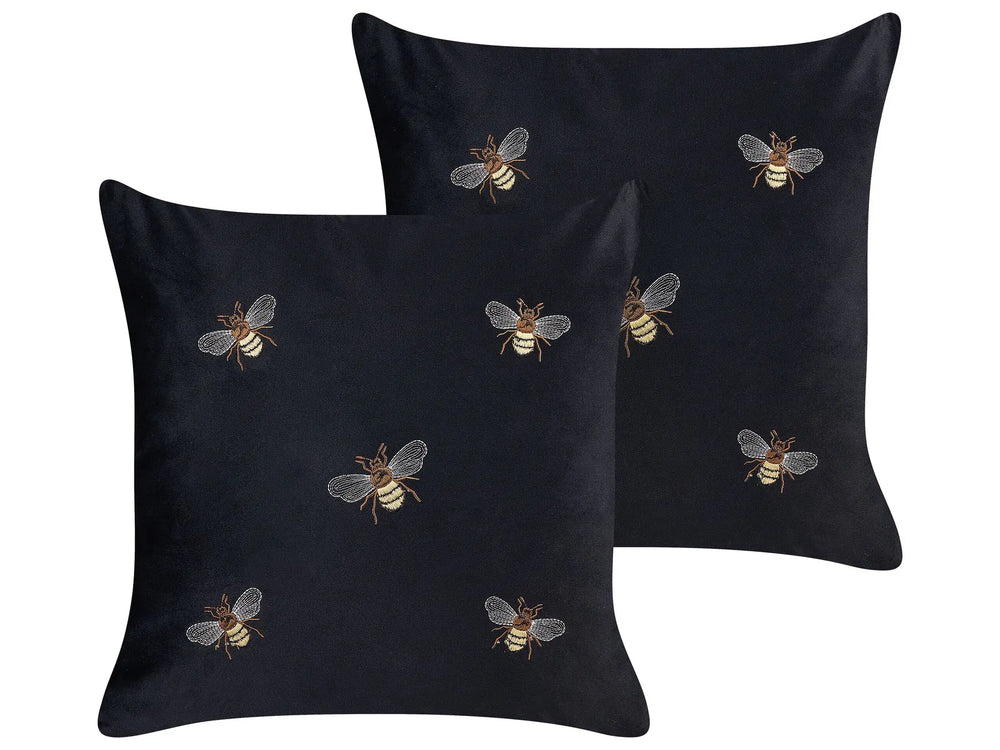 Set of 2 Decorative Cushions Black Bees Motif 45 x 45 cm Velvet Polyester Modern Glamour Decor Accessories Beliani