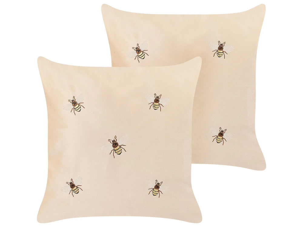 Set of 2 Decorative Cushions Beige Bees Motif 45 x 45 cm Velvet Polyester Modern Glamour Decor Accessories Beliani