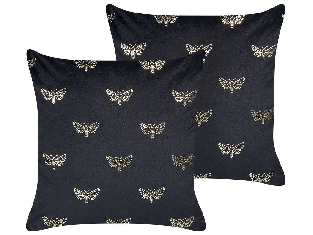 Set of 2 Scatter Cushions Black Velvet 45 x 45 cm Throw Pillow Butterfly Pattern Removable Cover with Filling Beliani is backordered and will ship as soon as it is back in stock.