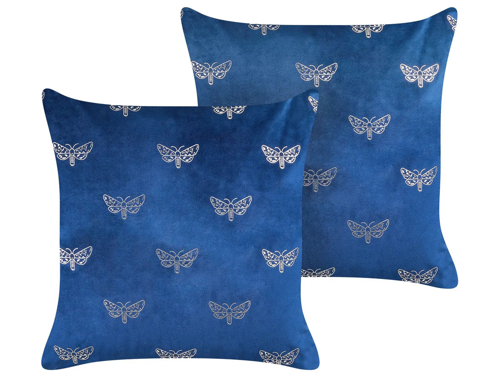 Set of 2 Scatter Cushions Blue Velvet 45 x 45 cm Throw Pillow Butterfly Pattern Removable Cover with Filling Beliani is backordered and will ship as soon as it is back in stock.