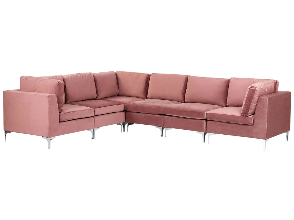 Right Hand Modular Corner Sofa Pink Velvet 6 Seater L-Shaped Silver Metal Legs Glamour Style Beliani is backordered and will ship as soon as it is back in stock.
