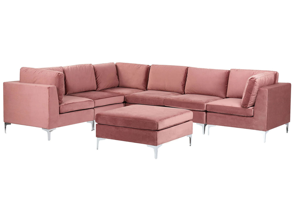 Right Hand Modular Corner Sofa Pink Velvet 6 Seater with Ottoman L-Shaped Silver Metal Legs Glamour Style Beliani is backordered and will ship as soon as it is back in stock.