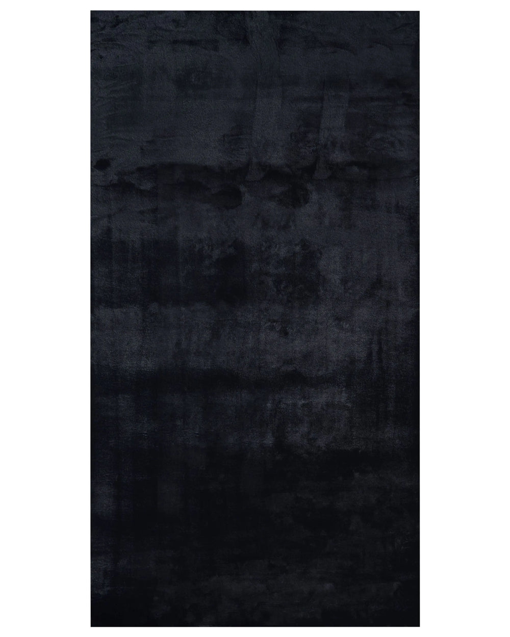 Faux Rabbit Fur Rug Black Artificial Polyester Fur 80 x 150 cm Soft Shaggy High Pile Rug Beliani