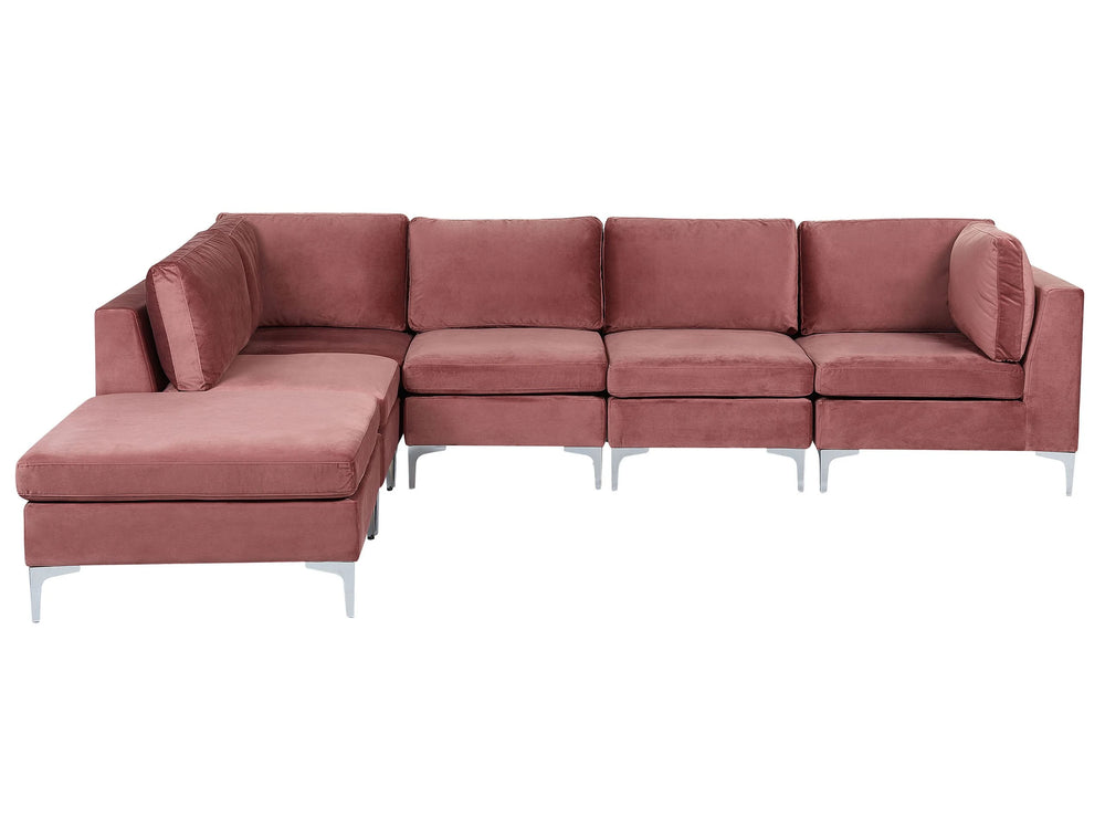 Right Hand Modular Corner Sofa Pink Velvet 5 Seater with Ottoman L-Shaped Silver Metal Legs Glamour Style Beliani is backordered and will ship as soon as it is back in stock.
