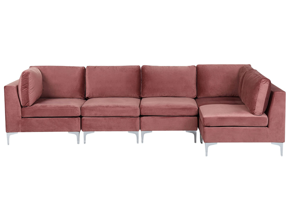 Left Hand Modular Corner Sofa Pink Velvet 5 Seater L-Shaped Silver Metal Legs Glamour Style Beliani is backordered and will ship as soon as it is back in stock.