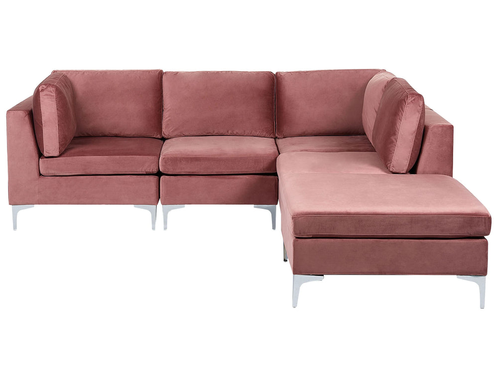 Left Hand Modular Corner Sofa Pink Velvet 4 Seater with Ottoman L-Shaped Silver Metal Legs Glamour Style Beliani is backordered and will ship as soon as it is back in stock.