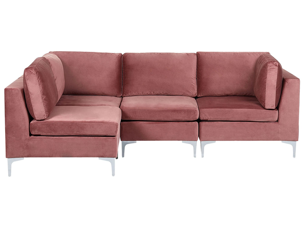 Right Hand Modular Corner Sofa Pink Velvet 4 Seater L-Shaped Silver Metal Legs Glamour Style Beliani