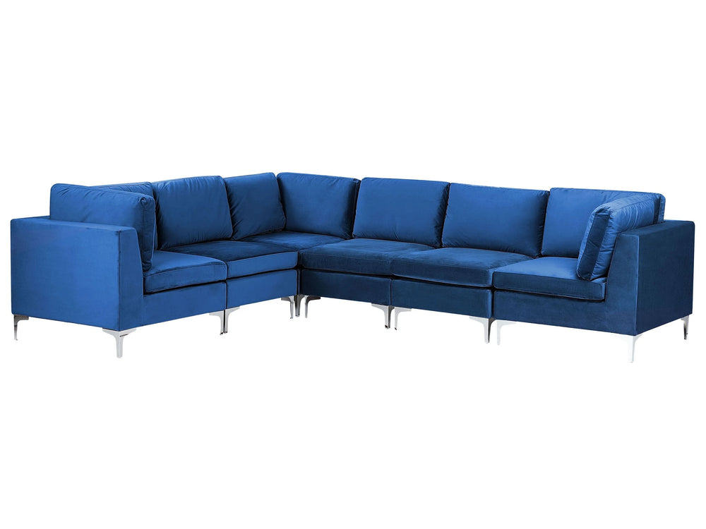 Right Hand Modular Corner Sofa Blue Velvet 6 Seater L-Shaped Silver Metal Legs Glamour Style Beliani is backordered and will ship as soon as it is back in stock.