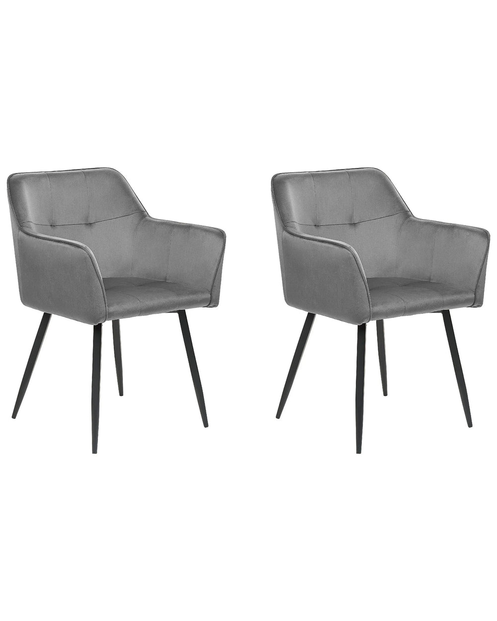 Set of 2 Dining Chairs Brown Velvet Upholstered Seat with Armrests Black Metal Legs Beliani is backordered and will ship as soon as it is back in stock.