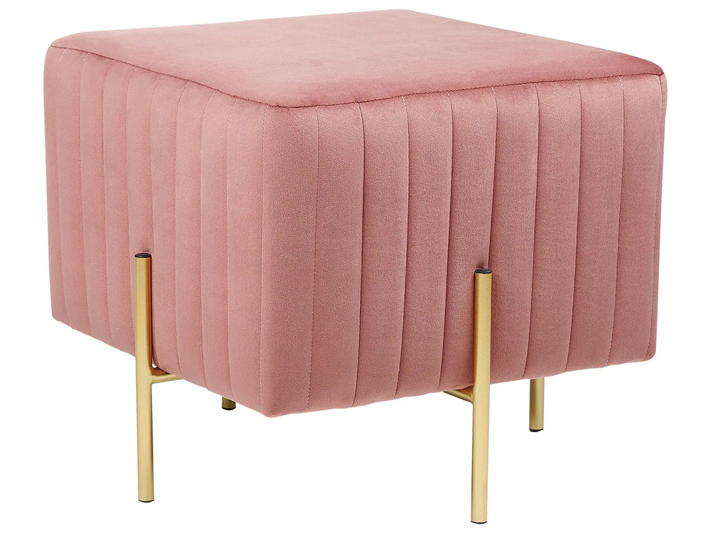 Footstool Pink Velvet Upholstered Ottoman Pouffe Gold Metal Legs 48 x 48 cm Square Seat Glamour Beliani is backordered and will ship as soon as it is back in stock.