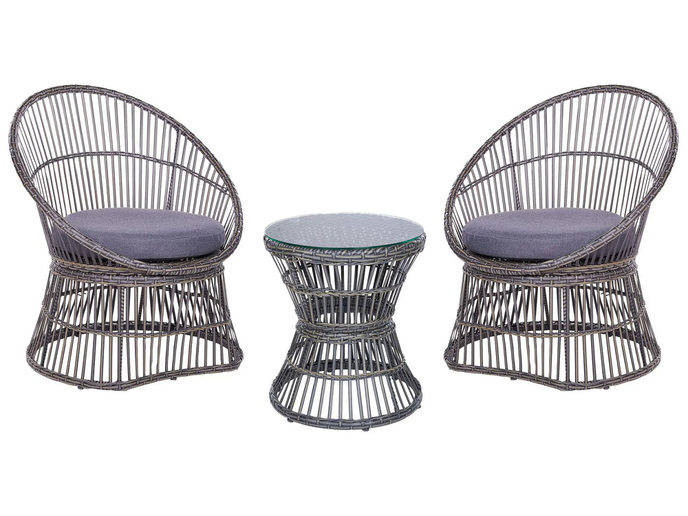 Balcony Bistro Set Taupe PE Rattan Cushions Coffee Table and 2 Chairs Modern Outdoor Design Beliani is backordered and will ship as soon as it is back in stock.