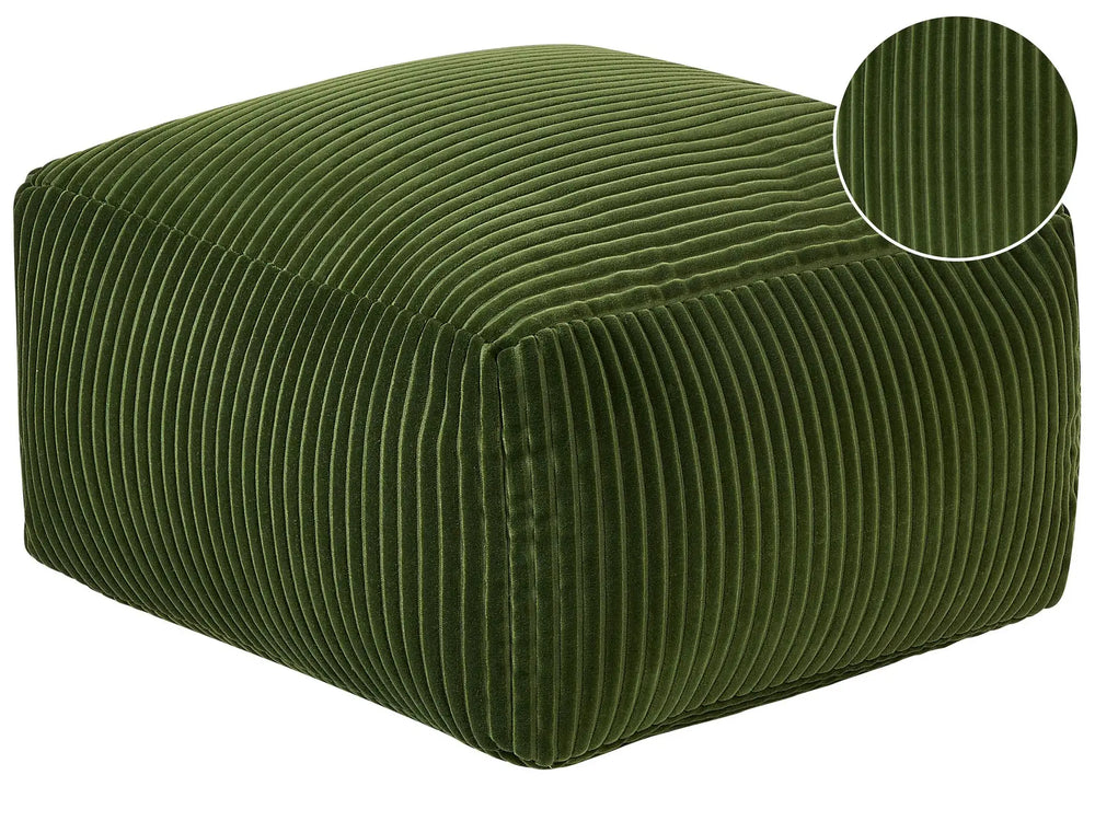 Pouffe Dark Green Corduroy EPS Beads Filling Solid Pattern Square Boho Modern Fabric Footstool Beliani