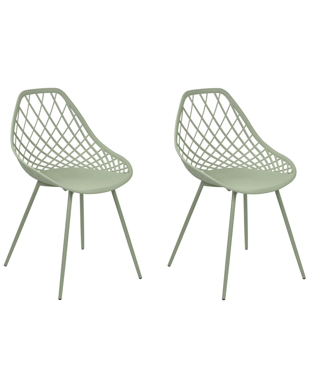 Set of 2 Dining Chairs Green Synthetic Seat Metal Legs Net Design Backrest Modern Scandinavian Beliani is backordered and will ship as soon as it is back in stock.