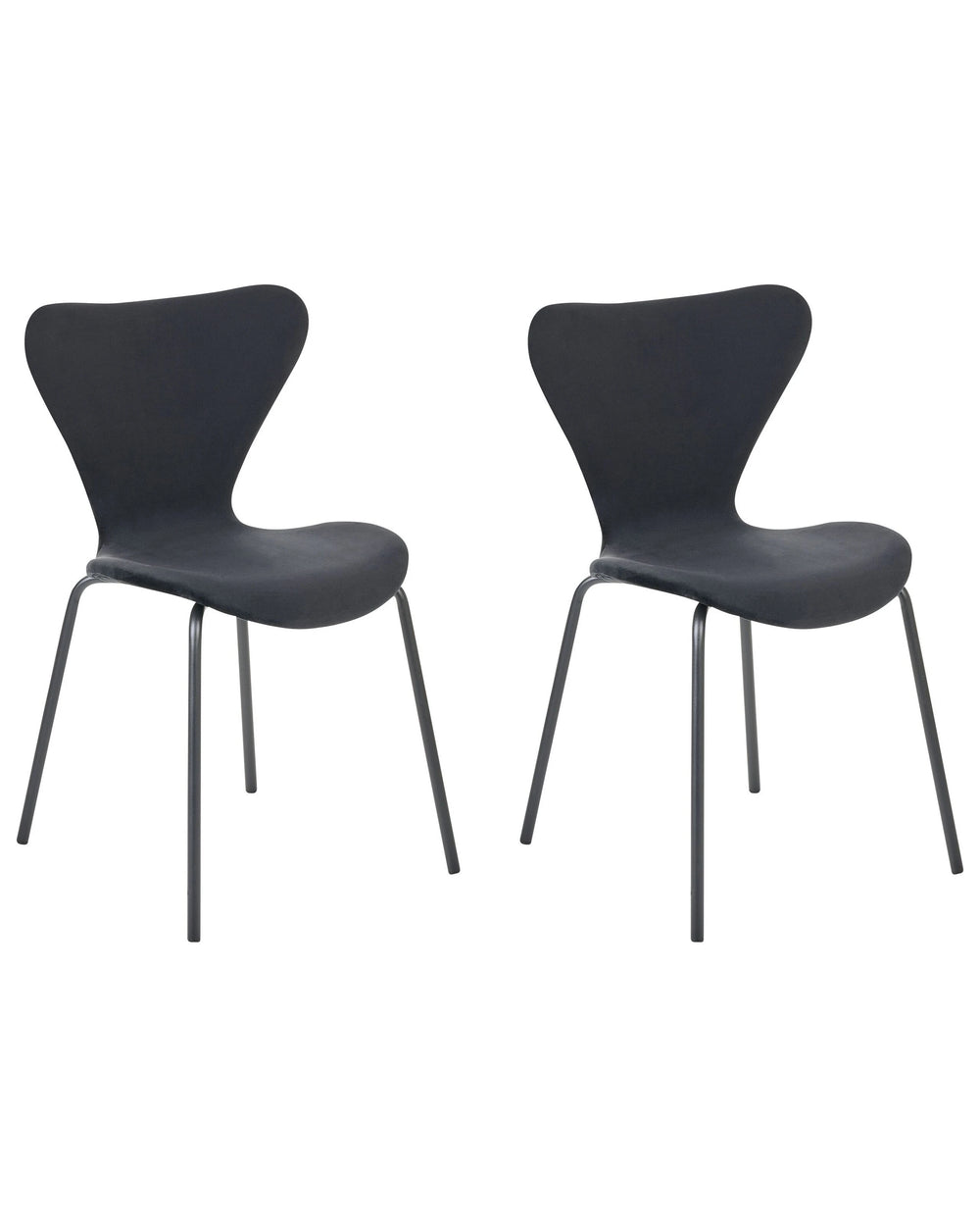 Set of 2 Dining Chairs Black Polyester Velvet Black Metal Legs Armless Modern Design Beliani is backordered and will ship as soon as it is back in stock.