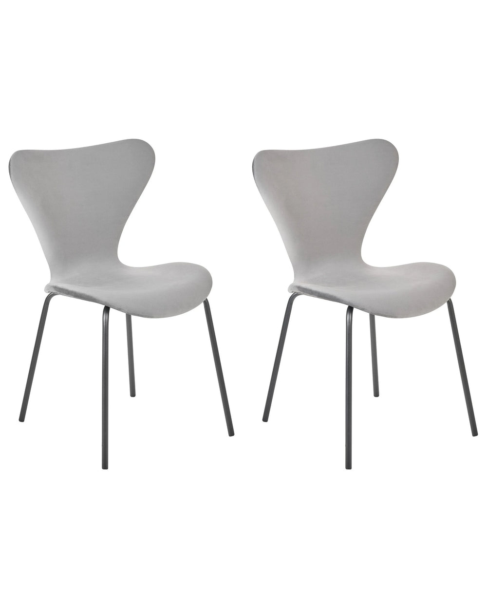 Set of 2 Dining Chairs Light Grey with Black Polyester Velvet Black Metal Legs Armless Modern Design Beliani is backordered and will ship as soon as it is back in stock.
