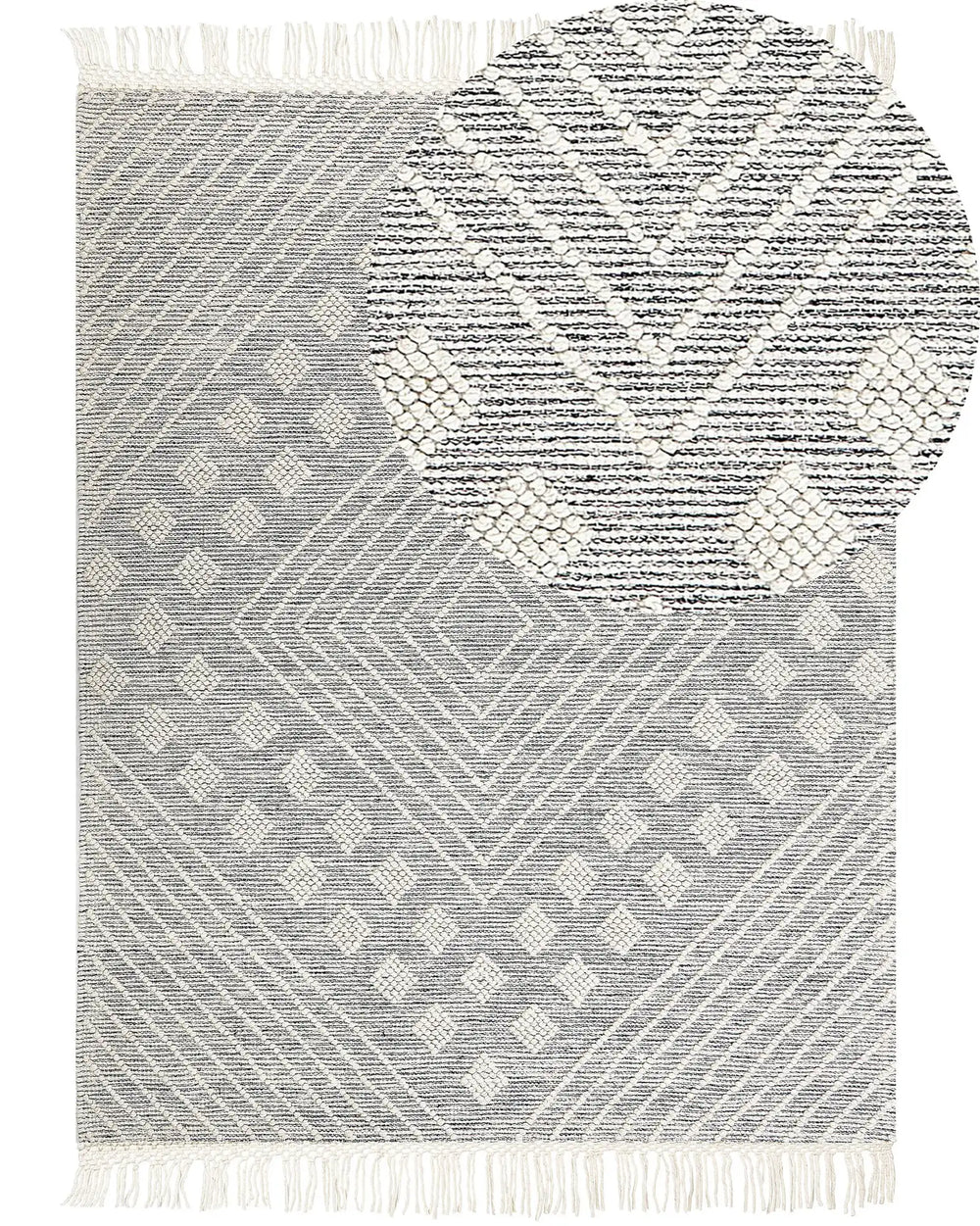 Area Rug White and Grey Wool 160 x 230 cm Hand Woven Geometric Pattern Scandinavian Style Living Room Bedroom Beliani is backordered and will ship as soon as it is back in stock.