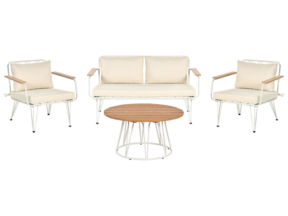 4-Seater Garden Sofa White and Beige Metal Steel 4 Seater with Cushions Modern Outdoor Beliani