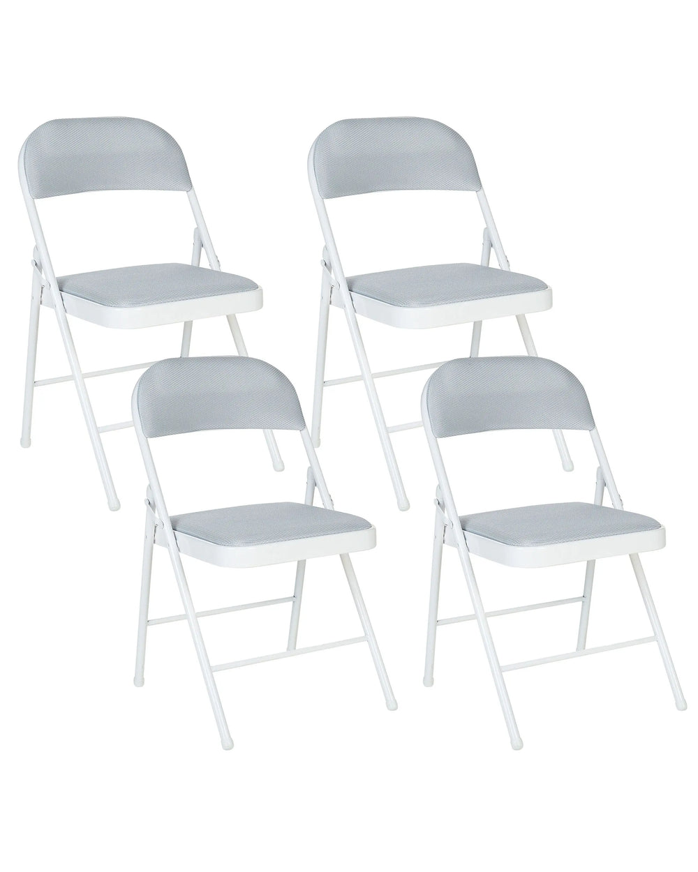 Set of 4 Folding Chairs Light Grey Metal White Frame Padded Fabric Seat and Backrest Fold Out Seats Beliani