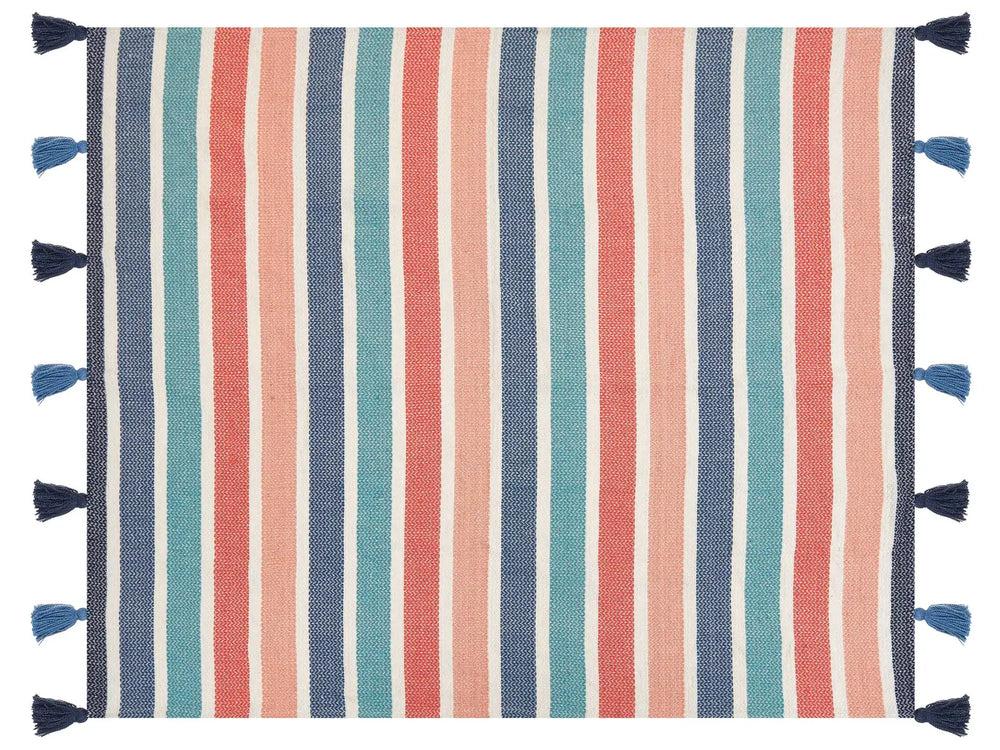 Throw Blanket Multicolour Polyester PET 130 x 150 cm with Decorative Tassels Striped Pattern Beliani