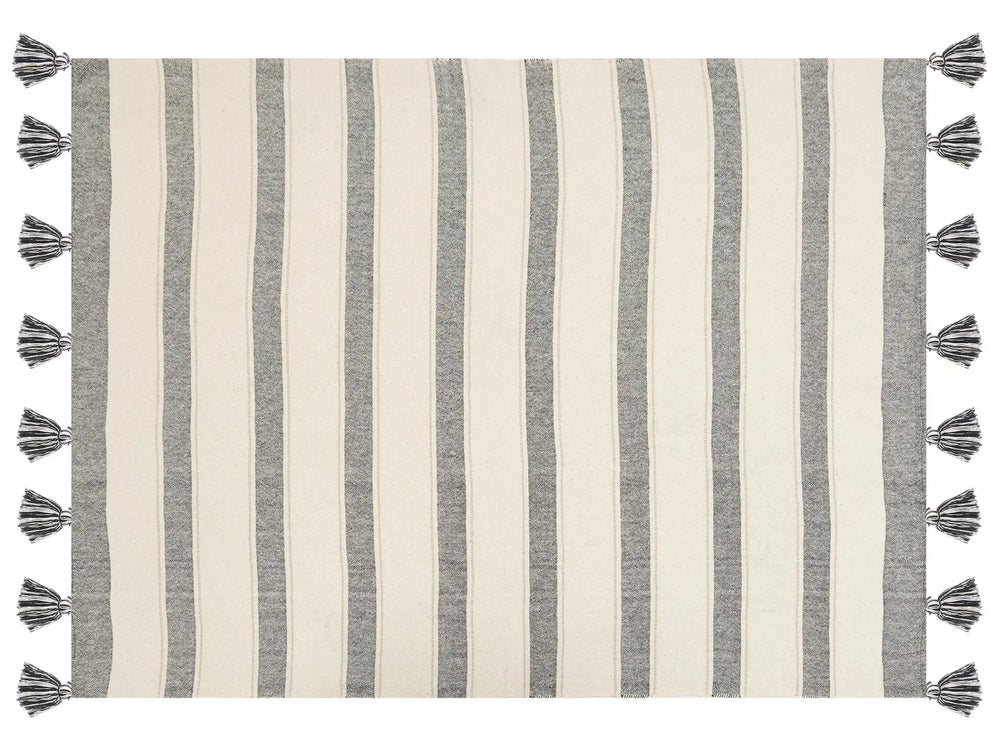 Throw Blanket Beige and Grey Cotton 130 x 170 cm Striped Pattern Accessory with Decorative Tassels Handmade Beliani is backordered and will ship as soon as it is back in stock.