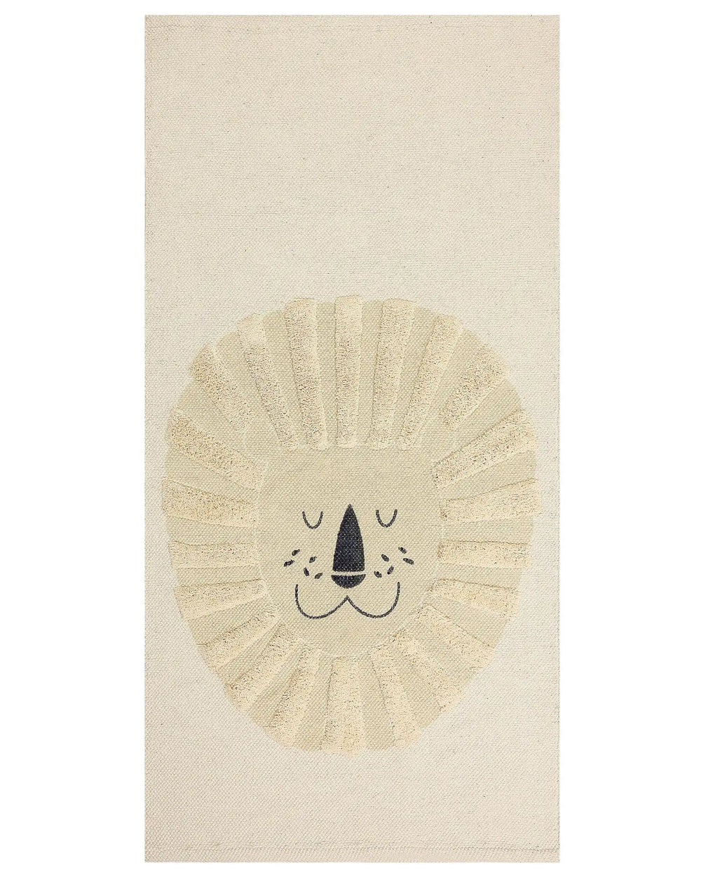 Kids Area Rug Beige 80 x 150 cm Cotton Animal Lion Pattern Handwoven Floor Playmat Beliani