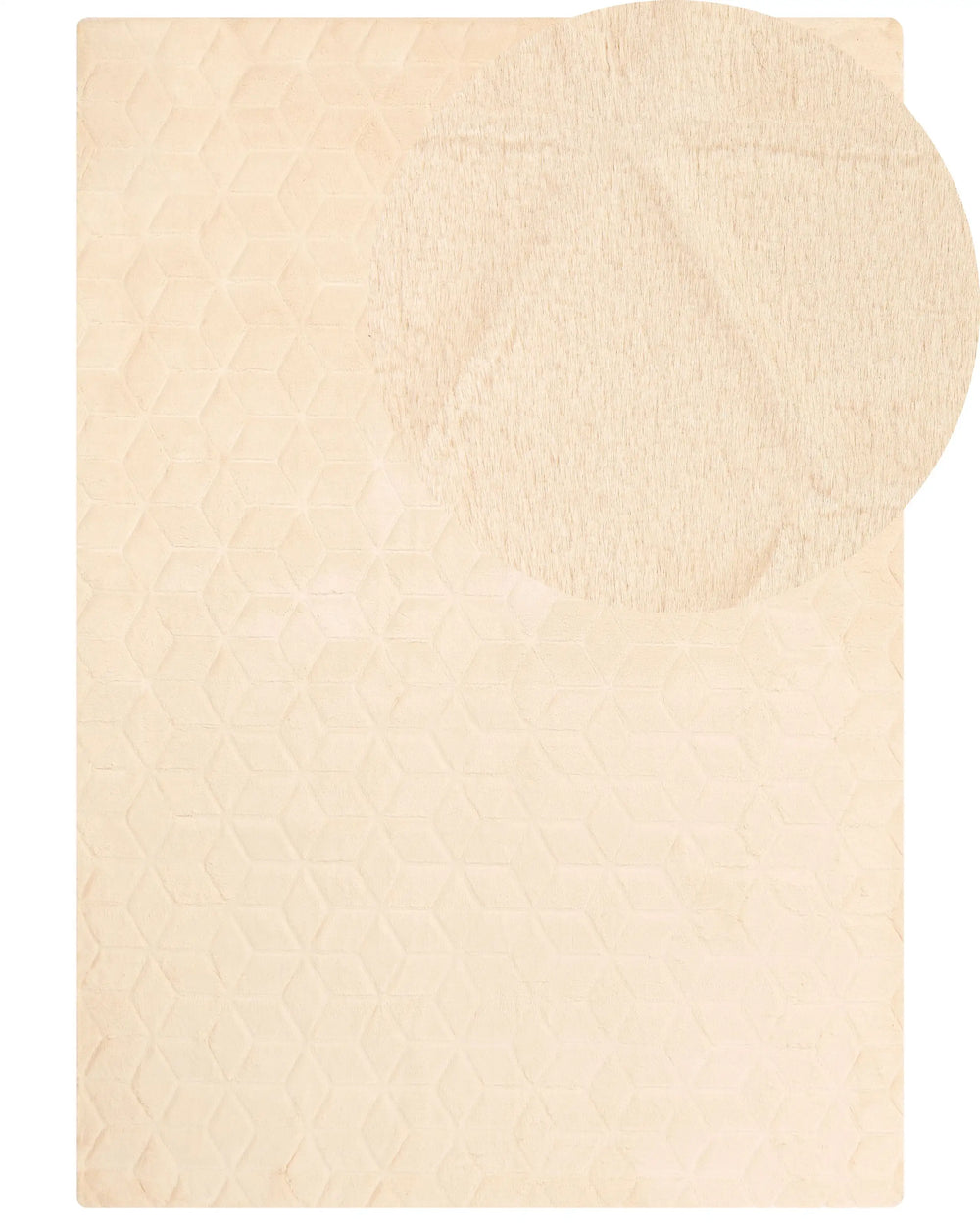 Faux Rabbit Fur Rug Beige Artificial Polyester Fur 160 x 230 cm Soft Shaggy High Pile Rug Beliani