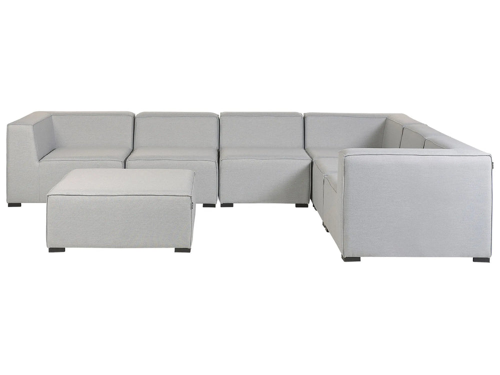 Corner Sofa Set Light Grey Fabric Upholstery 7 Seater with Ottoman Indoor Outdoor Modular Garden Lounge Set Left Hand Beliani is backordered and will ship as soon as it is back in stock.
