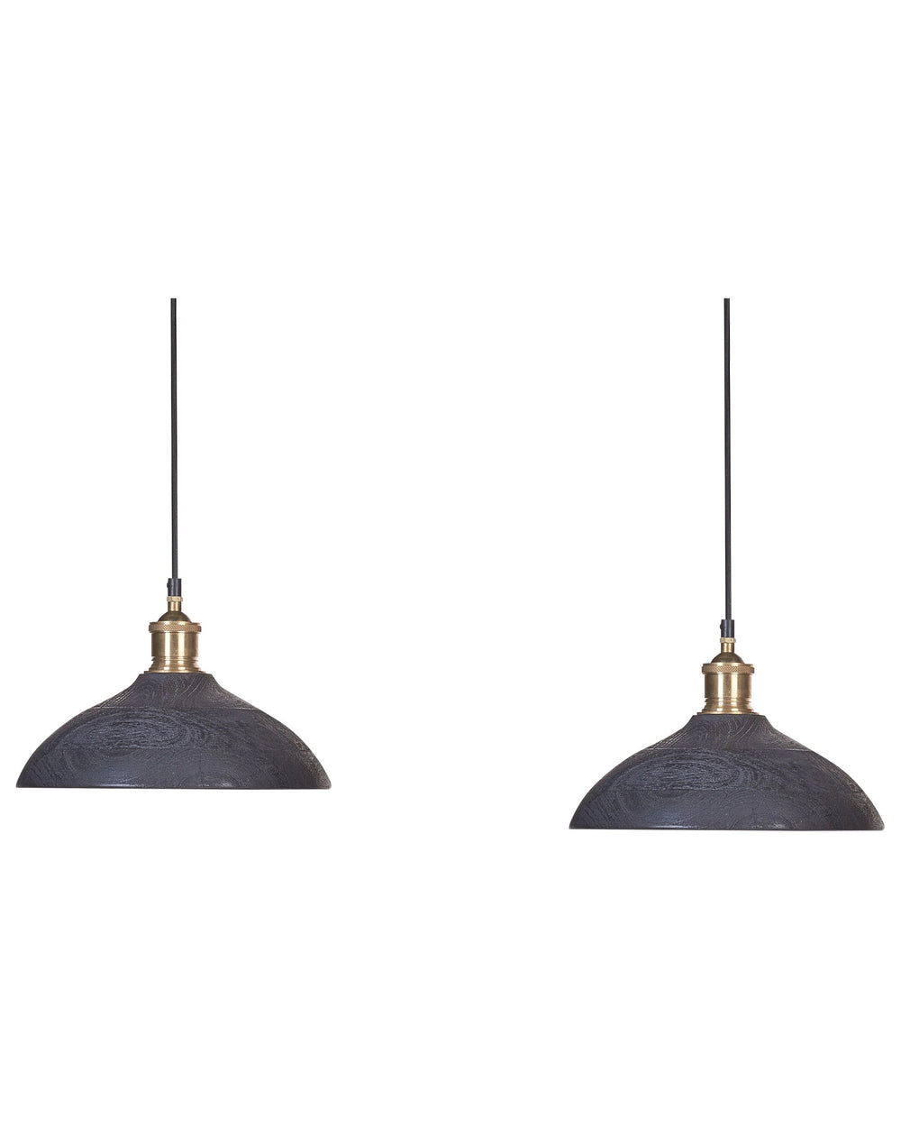 Pendant Lamp Black Natural Wooden Shade Ceiling Light Boho Style Home Accessories Handmade Beliani