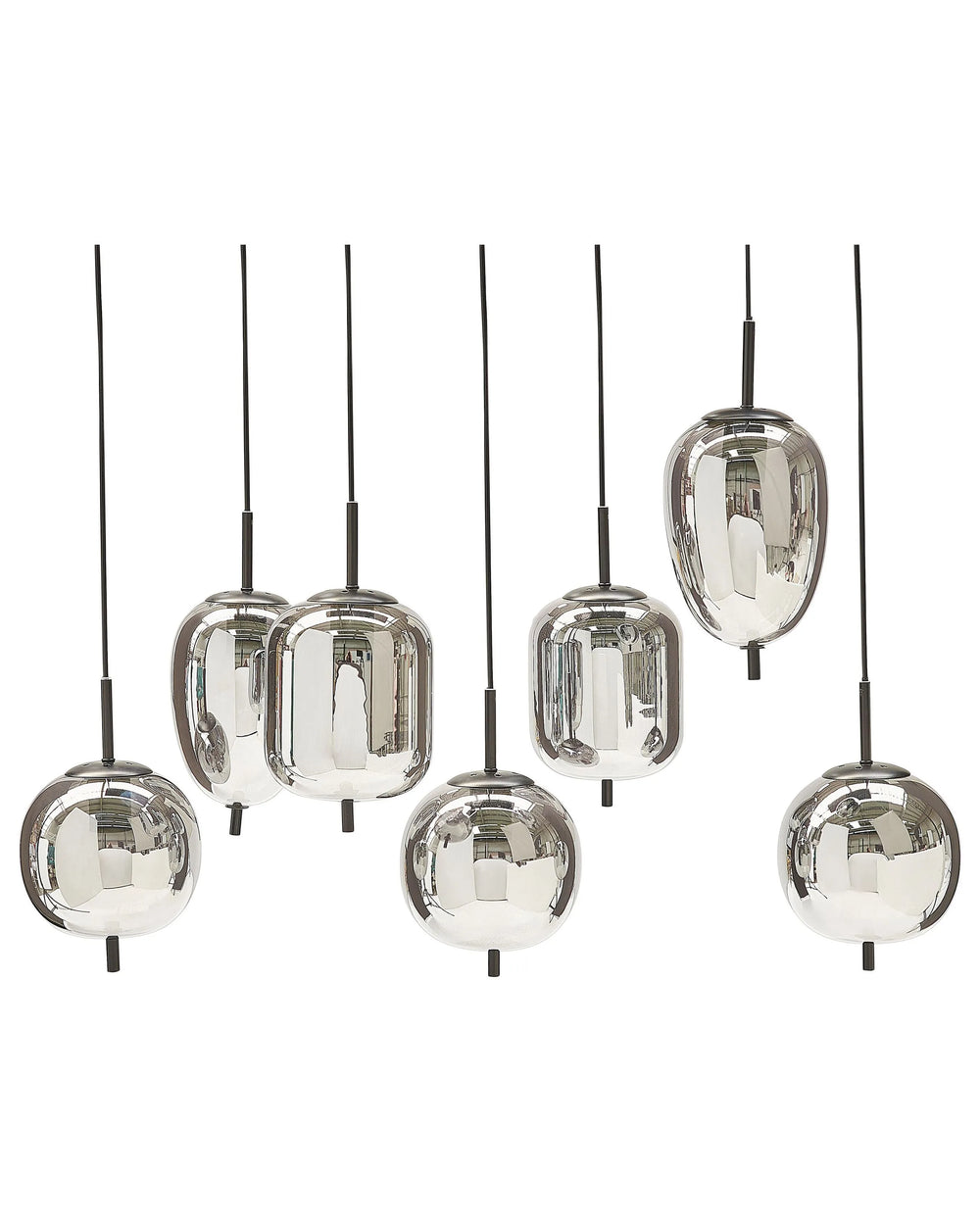 Pendant Lamp Semi-Transparent Smoked Silver Glass Shades Iron 7 Light Modern Design Home Accessories Living Room Beliani