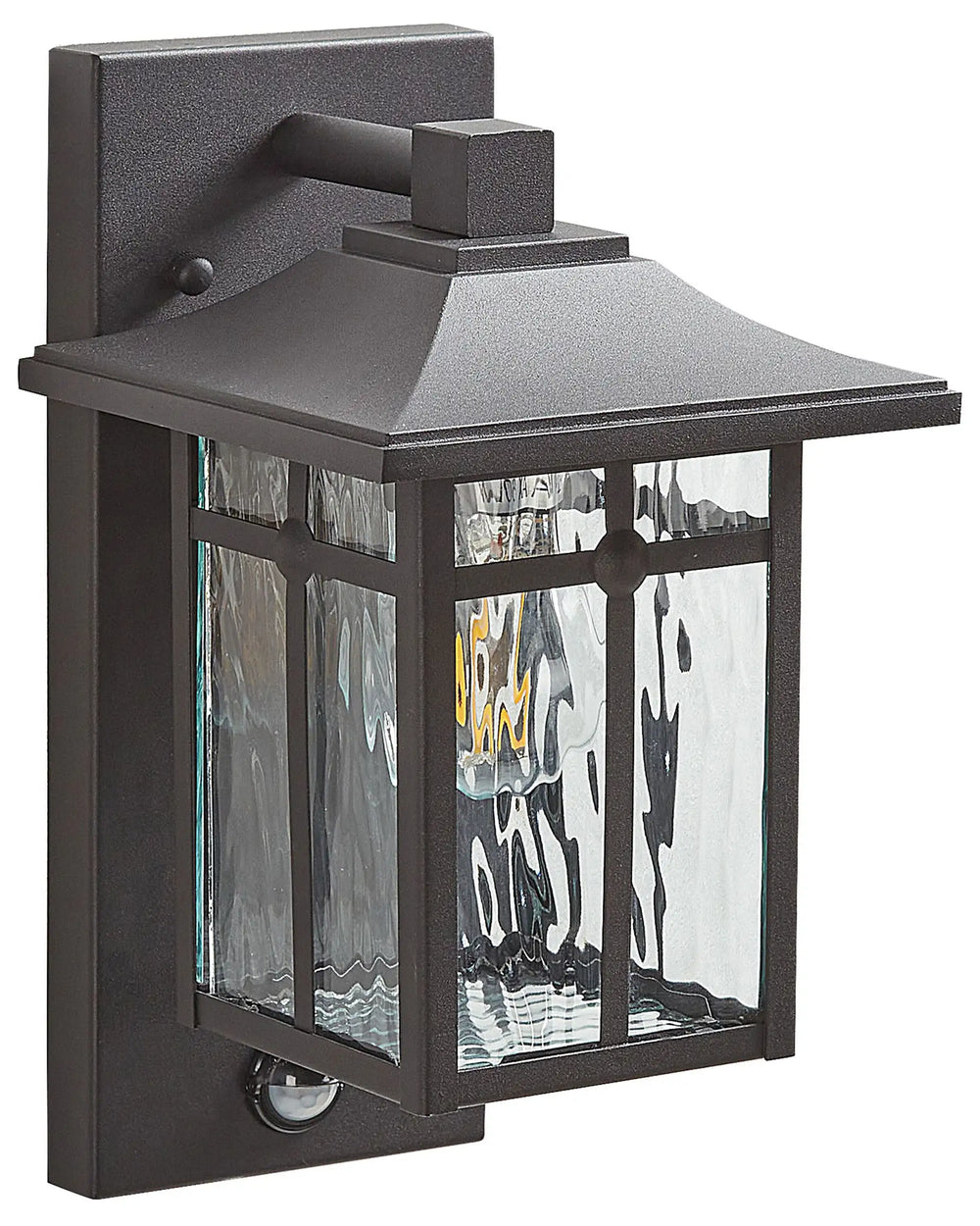 Outdoor Wall Light Lamp Black Iron Glass 30 cm with Motion Sensor External Retro Design Beliani