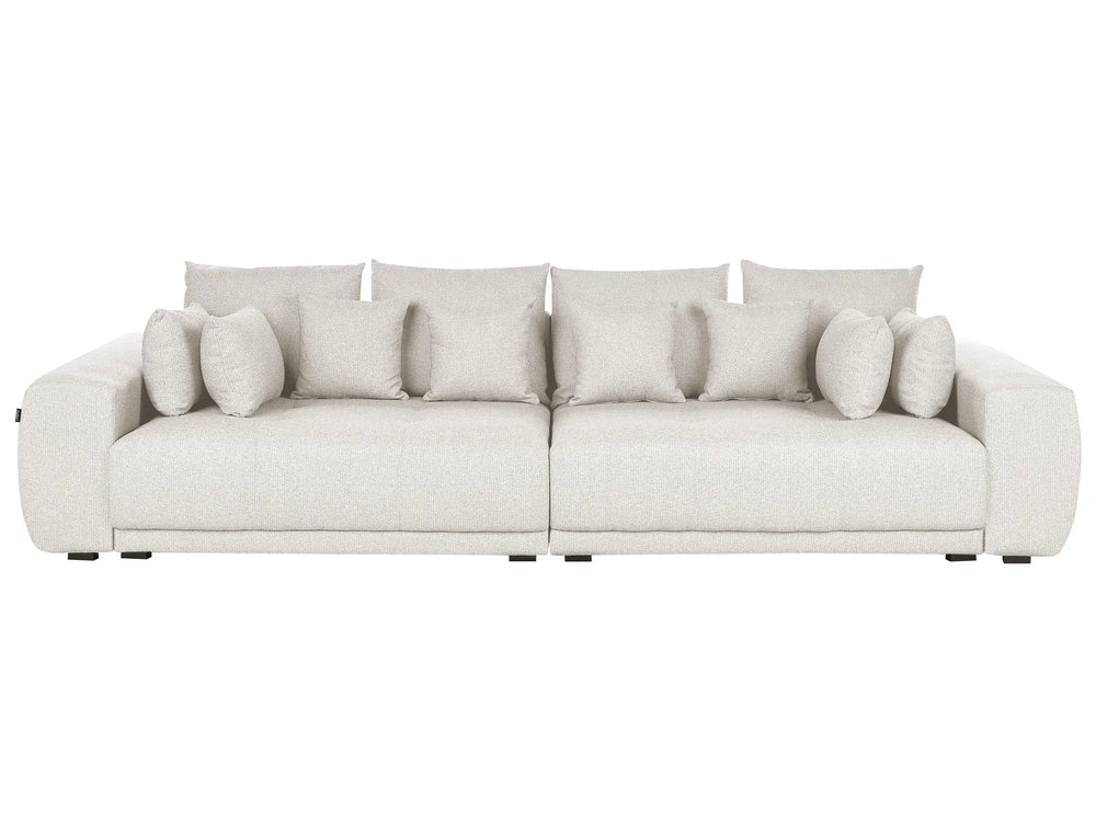 Sofa with 8 Pillows Beige Fabric Upholstery 4 Seater Pillow Back Modern Traditional Living Room Beliani