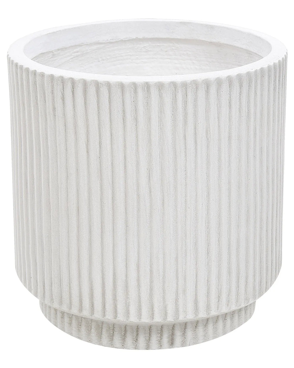 Flower Planter White Fibre Clay Garden Plant Pot 24 x 24 x 24 cm Drainage Hole Vertical Rib Finish Outdoor Patio Garden Beliani