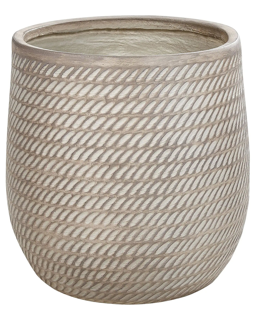 Plant Pot Beige Taupe Fibre Clay 39 cm Round Outdoor Flower Pot Embossed Pattern Beliani