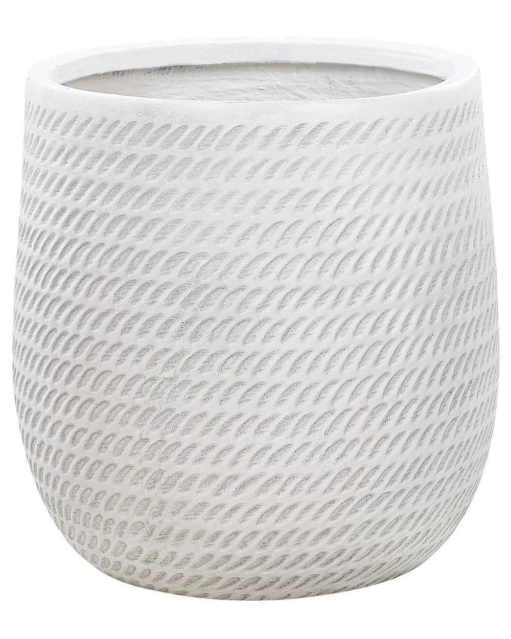 Plant Pot Off-White Fibre Clay 39 cm Round Outdoor Flower Pot Embossed Pattern Beliani