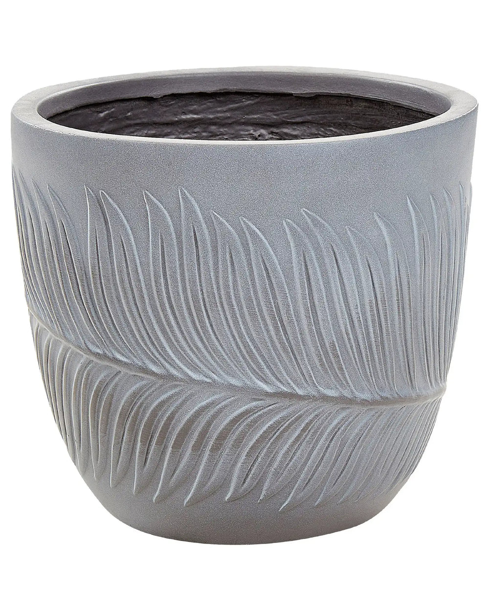 Outdoor Plant Pot Clay Fibre Grey 28 x 28 x 16 cm Planter Round UC Resistant Leaf Motif Traditional Beliani is backordered and will ship as soon as it is back in stock.