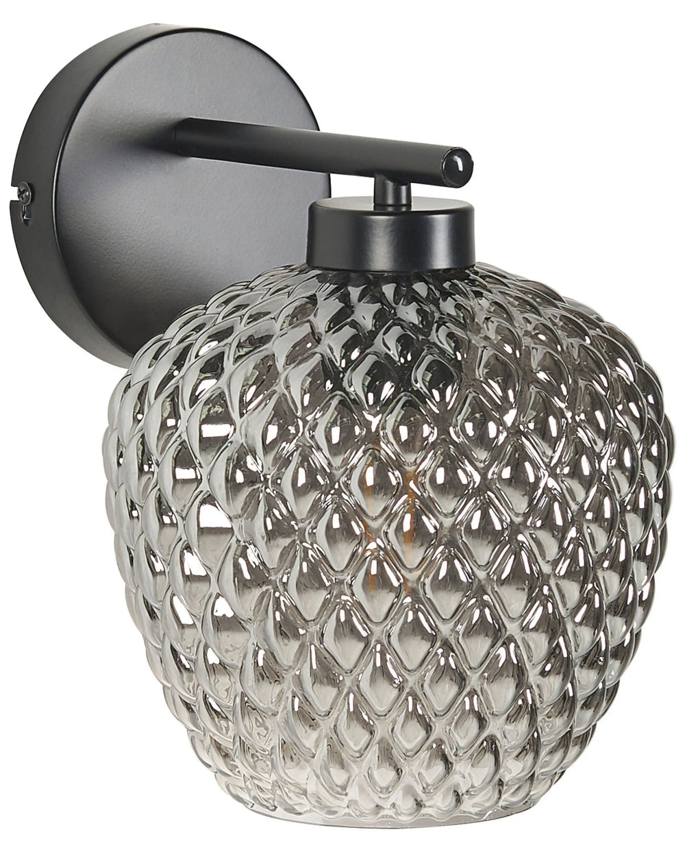 Wall Lamp Grey and Black Iron Base Glass Smoked Shade Single Light Point Home Accessories Illumination Beliani