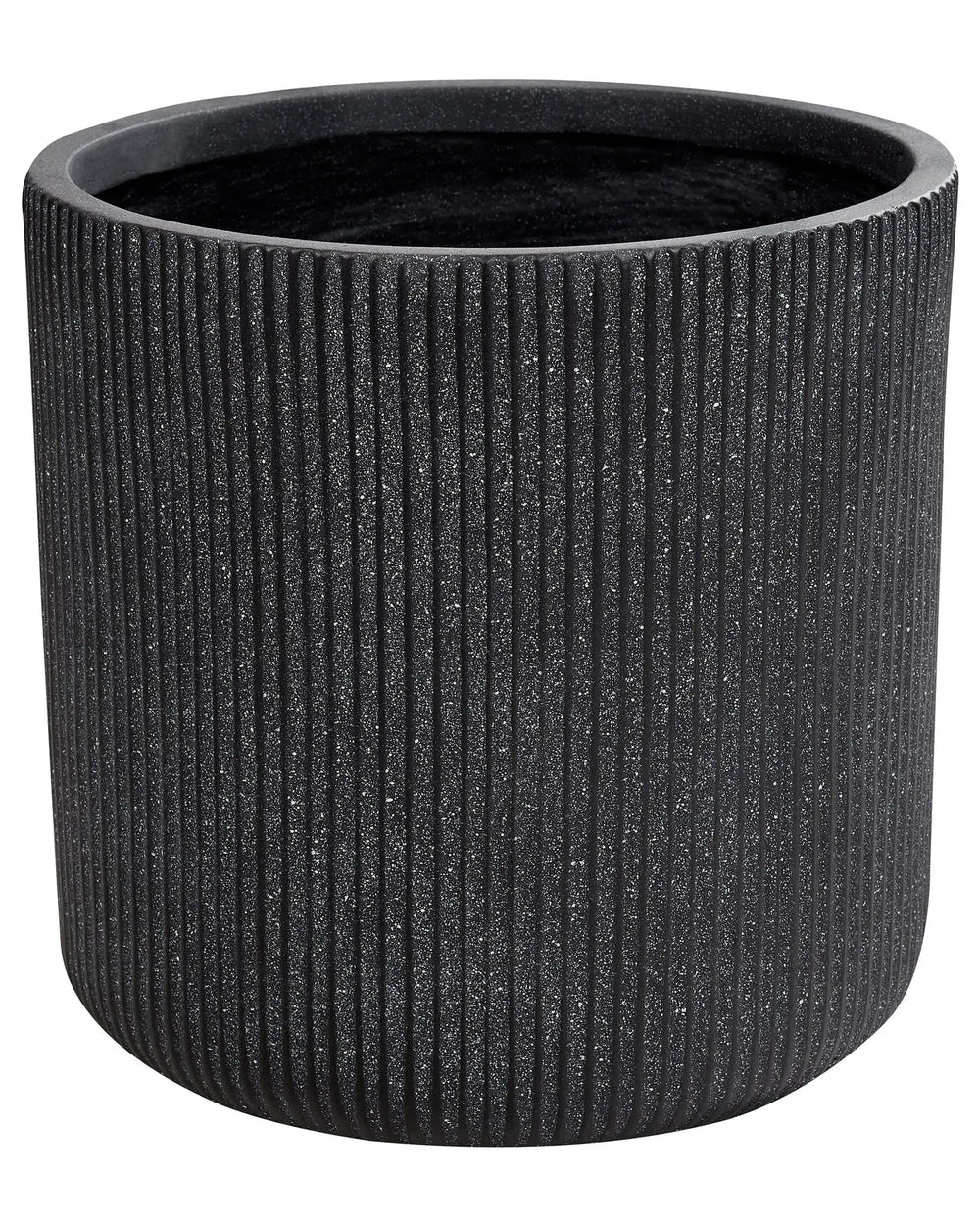 Outdoor Plant Pot Clay Fibre Graphite Grey 37 x 37 x 37 cm Planter Flower Round UV Resistant Ribbed Fluted Surface Solid Colour Traditional Beliani