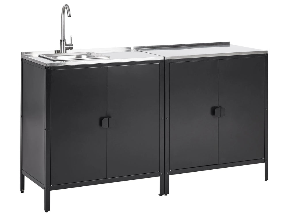 2 Piece Outdoor Kitchen Set Black Stainless Steel 2 Cabinets Sink Single Lever Outdoor Kitchen Cooking Station Beliani