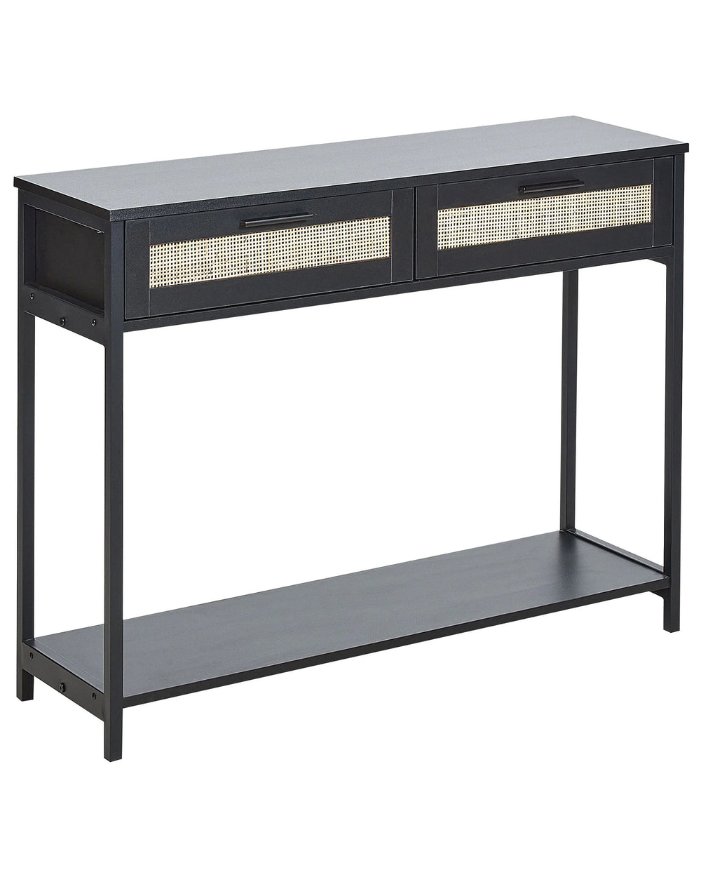 Console Table Black Manufactured Wood Black Rubberwood 100 x 30 cm Legs 2 Drawers Rattan Wicker Fronts Living Room Bedroom Hallway Furniture Boho Design Beliani