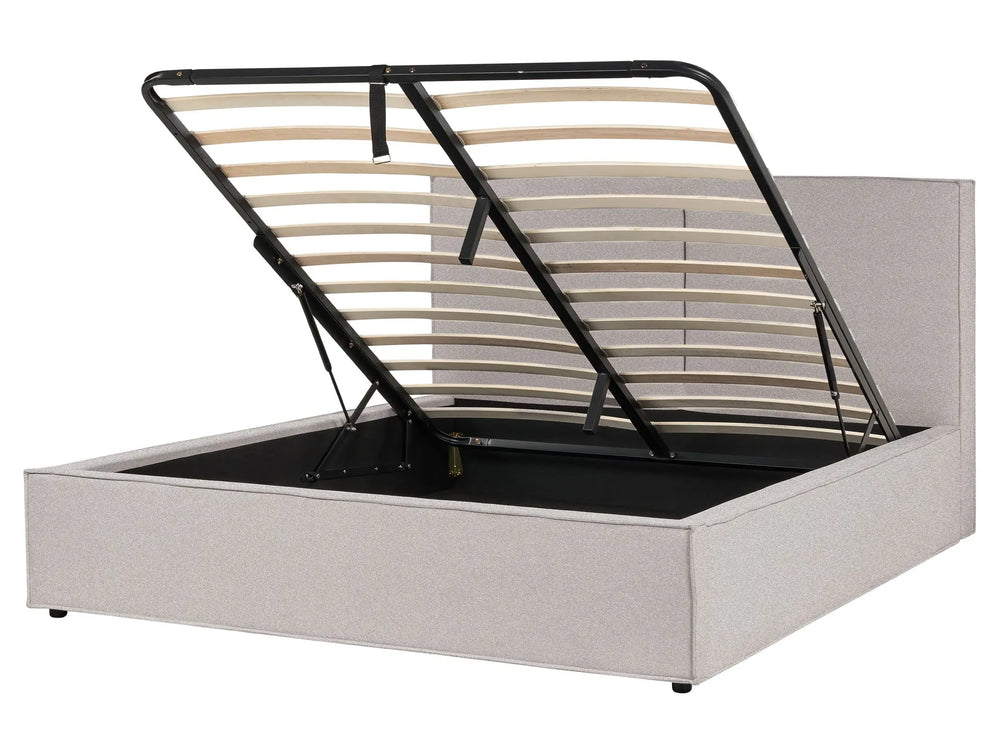 EU King Size Panel Bed 5ft3 Light Grey Fabric Upholstery Storage Ottoman Slatted Frame Contemporary Modern Bedroom Beliani