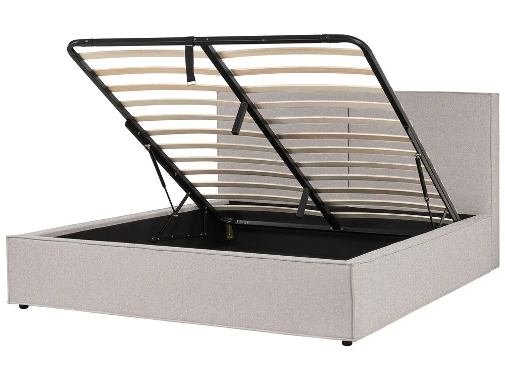 EU Super King Size Panel Bed 6ft Light Grey Fabric Upholstery Storage Ottoman Slatted Frame Contemporary Modern Bedroom Beliani