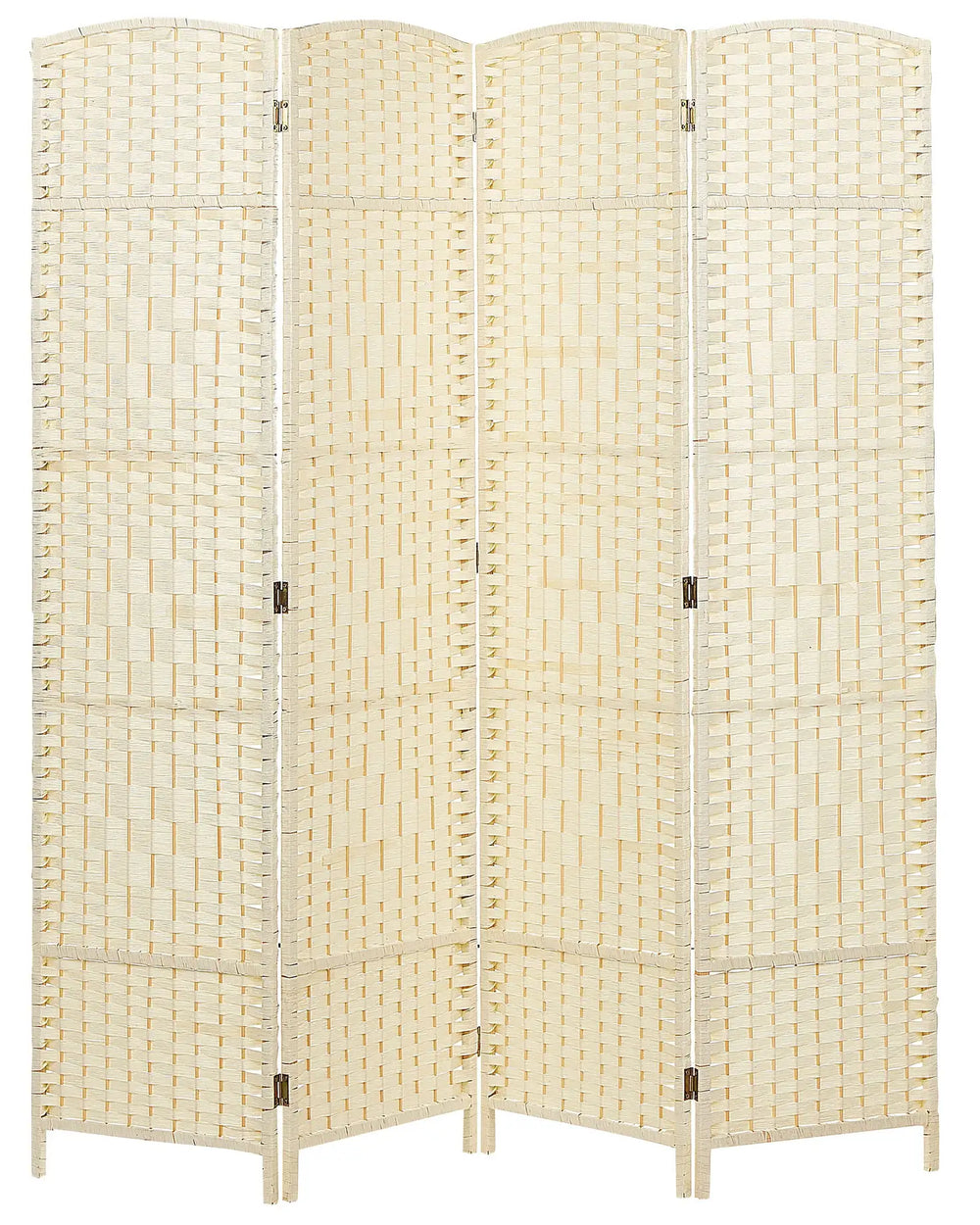 Room Divider Beige Paper Rope Poplar Wood Frame 4 Panels Folding Decorative Screen Partition Living Room Bedroom Traditional Design Beliani