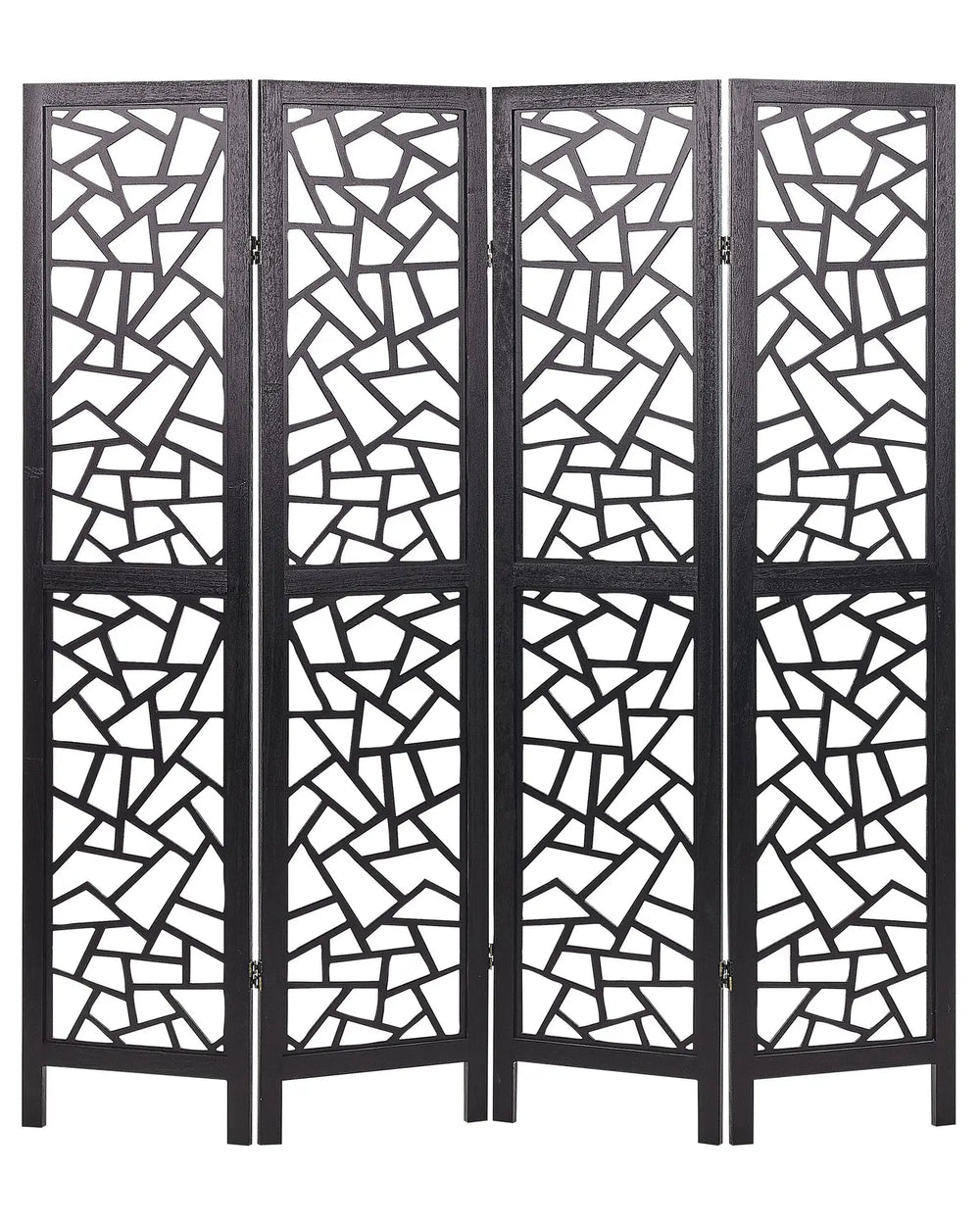 Room Divider Black Paulownia Wood MDF 4 Panels Folding Decorative Screen Partition Living Room Bedroom Traditional Modern Design Beliani
