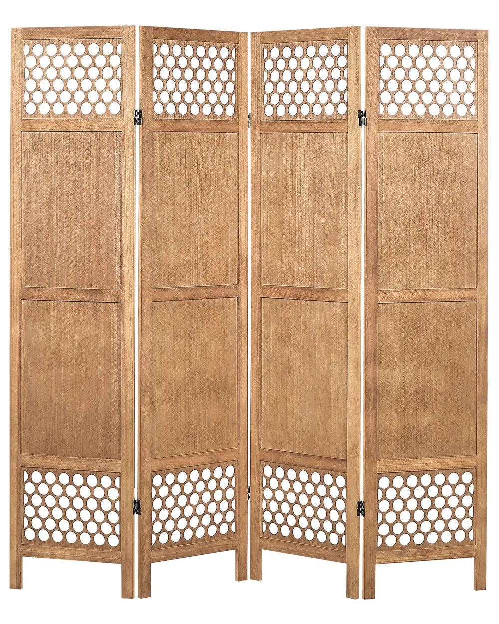 Room Divider Light Wood Paulownia Wood MDF 4 Panels Folding Decorative Screen Partition Living Room Bedroom Traditional Modern Design Beliani