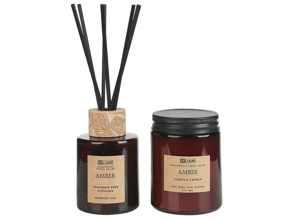 Fragrance Set Candle and Reed Diffuser Scented Sticks 100% Soy Wax Cotton Wick Glass Amber Oriental Beliani
