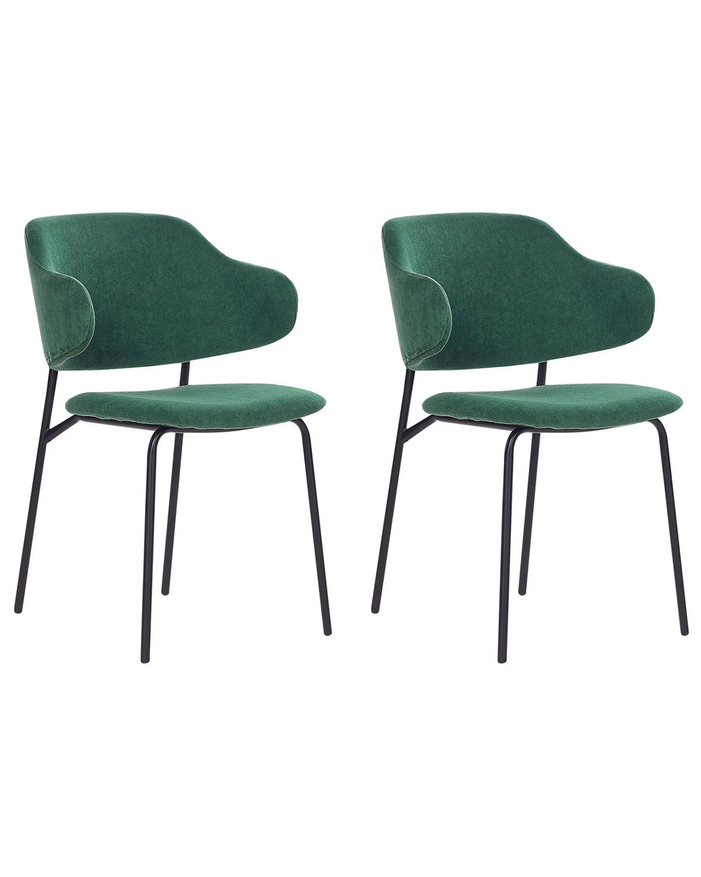 Set of 2 Dining Chairs Green Fabric Upholstery Black Metal Legs Armless Curved Backrest Modern Contemporary Design Beliani