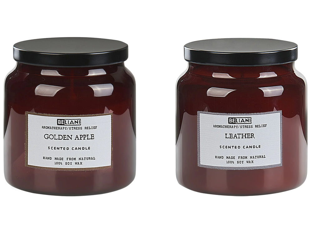 Set of 2 Scented Candles 100% Soy Wax Cotton Wick Glass Fresh Fragrance Golden Apple/Leather Absolute Alchemy Beliani