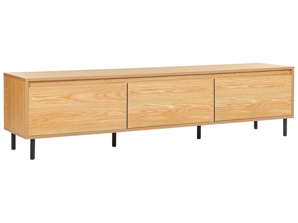 Mueble TV moderno minimalista aparador metal negro patas 3 puertas compartimento madera clara Beliani