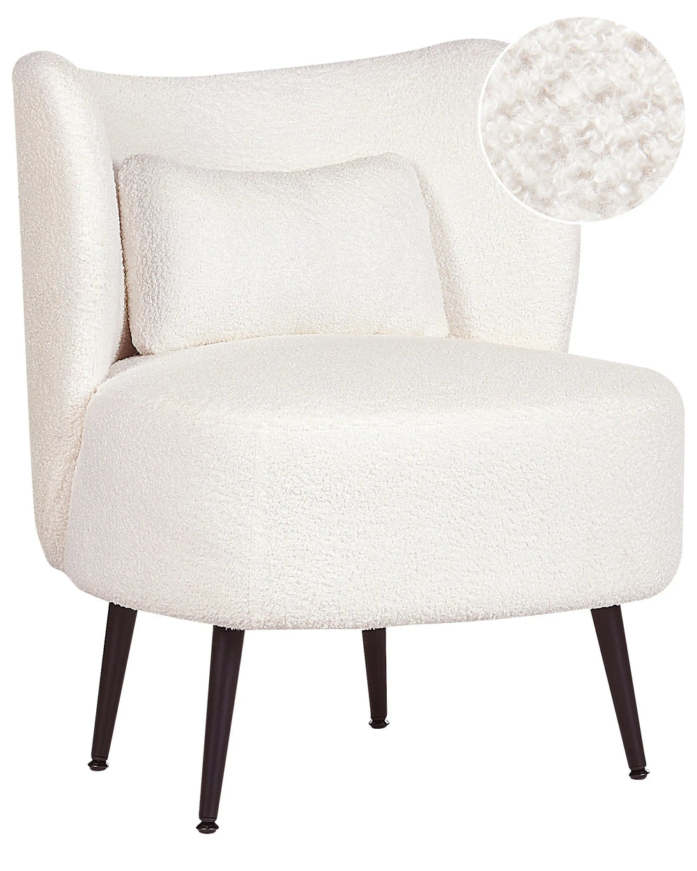 Armchair Off-White Boucle Fabric Soft Nubby Black Legs Curved Backrest Retro Glam Art Decor Style Beliani
