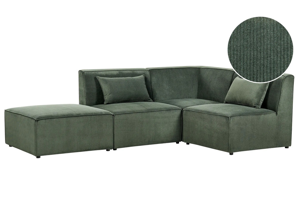 Modular Left Corner Sofa Dark Green Corduroy with Ottoman 3 Seater Sectional Sofa Modern Design Beliani